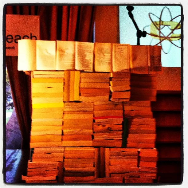 The speakers were an artist who uses books as physical objects to create with (Lisa Occhipinti who created the book podium above), antique bookseller Jeff Weber who described the struggles book sellers face with the internet and ebooks so accessible, museum curator Max Presneill who passionately advocated that we go to indie galleries and support emerging artists, and author Susan Straight who is an awesome storyteller in person and in print.